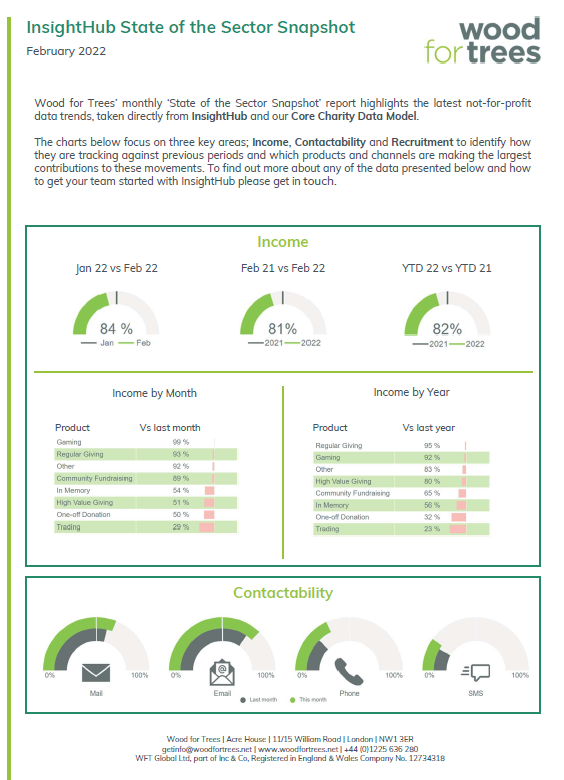 Wood for Trees’ monthly State of the Sector Snapshot reports highlight the latest not-for-profit data trends, taken directly from InsightHub and our Core Charity Data Model