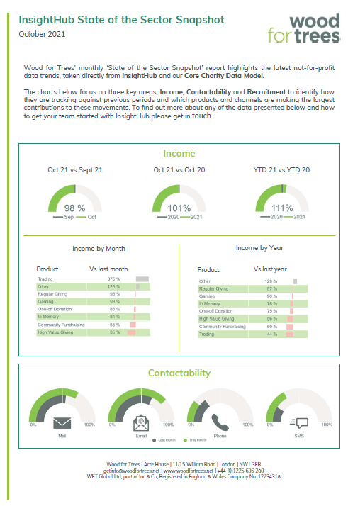Wood for Trees’ monthly State of the Sector Snapshot reports highlight the latest not-for-profit data trends, taken directly from InsightHub and our Core Charity Data Model